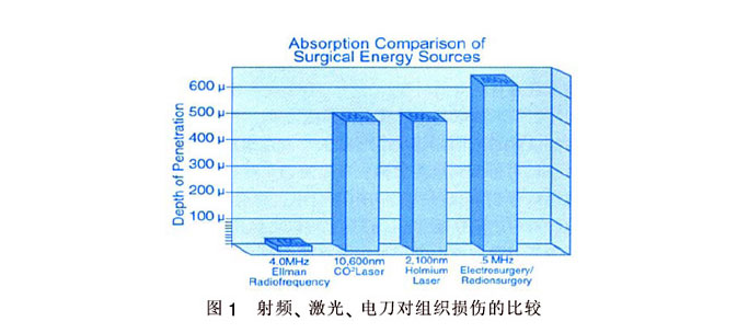 与激光或传统电外科器械比较,射频电波有如下特点:1)选择性电热作用:与普通电刀不同,射频转化的热能产生于组织内部,发射极本身不发热,无电流通过人体,所以局部作用温度低而热效应高,减轻了对周围组织的损伤和细胞的破坏,特别是皮下组织液化性坏死少,Sadick等称之为“选择性电热作用”。2)微创:投射电镜观察发现,射频电波刀对组织侧面的热损伤仅为15μm, 而普通电刀>650μm, CO2激光和狄激光均>500μm,手术刀虽对组织无热效应,但有机械损伤。3)安全:由于射频对细胞的组织损伤极轻微,故术后恢复快,故术后恢复快,瘢痕不明显,无色素沉淀。此外,射频对组织进行的是无压力切割,产生的切口光滑精细,止血良好,对病变组织汽化完好,无碳化,温度可调,视野清晰。4)操作方便:由于电极种类多,且可制成各种形状,工作面可以任意控制,灵巧精准,在身体任何部位均操作方便。此外,多数电极可重复使用,大大降低了成本。